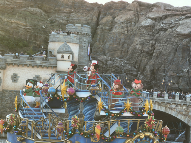 広大なハーバー全体に響き渡るクリスマスソングと、キャラクターたちの姿が、シーならではのロマンチックなクリスマスの始まりを告げてくれます。