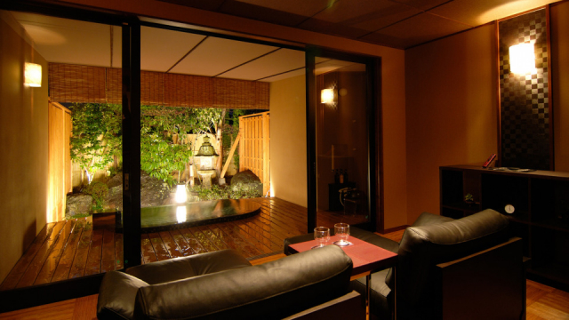 「三養荘」は春は桜、夏は花しょうぶ、秋は紅葉と、四季折々の庭園が美しい純和風宿。プライベート感たっぷりの客室温泉、季節の彩りを五感で味わえる懐石料理とともに、離宮にいるような至福の時を過ごすことができます。