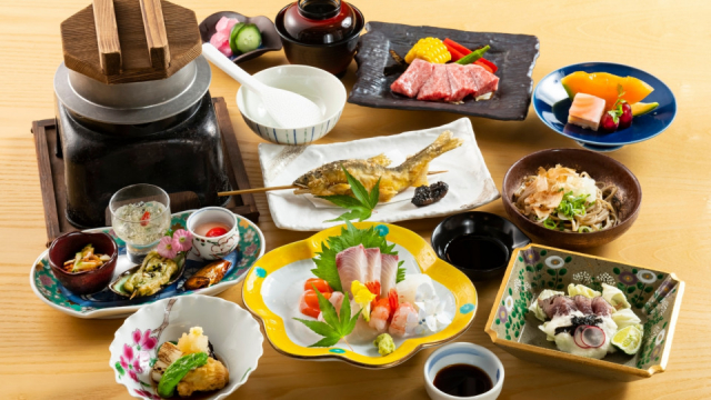 食の充実にも力を入れるお宿で、旬ダイニング「千の幸」のオープンキッチンでは料理人が腕をふるい、出来たての料理を提供してくれます。