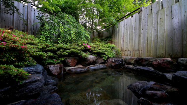 24時間利用できる大浴場と庭園のある石造りの露天風呂で、旅の疲れを癒やしてくださいね。女性用大浴場には、常時数種類のシャンプー、コンディショナーと化粧品を完備しています。