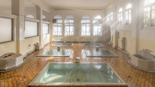 四万の歴史を物語る名物の本館と内風呂「積善館」