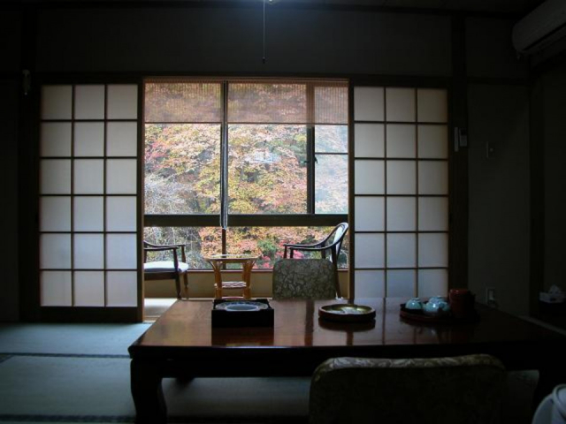 ひとつひとつ意匠が異なる客室専用風呂を備えた部屋が本館に6室、別館に12室があり、四万川を望む食事処でいただく和洋折衷料理も人気の理由です。