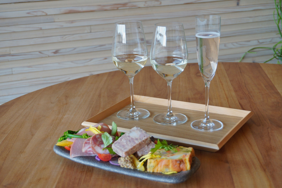 前菜5種盛り1980円と3種類飲み比べコース(富士山ワイナリーセレクション)1650円