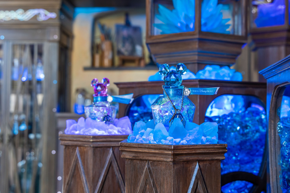 中に入ったらまず、ミッキーモチーフのボトル(1本2,000円/体験料込み)を購入します。奥に進むと、ジュビリーブルーストーンがきらめく特別な空間が現れます。ストーンの前に立ち、目を閉じて1つピックアップしたらボトルに入れて持ち帰りましょう。