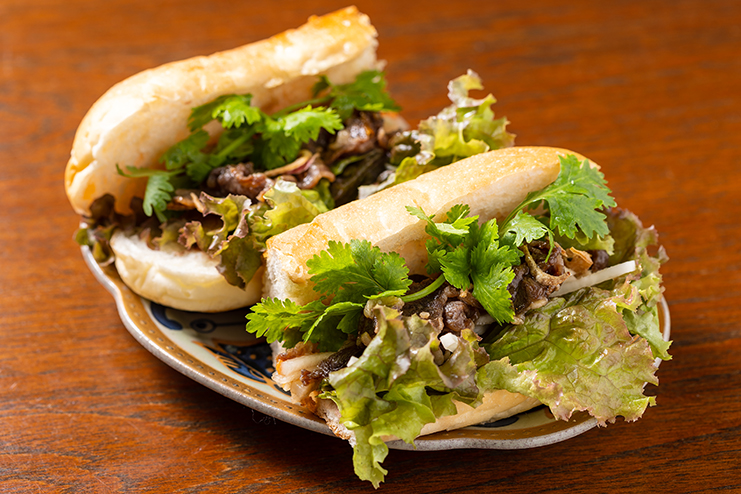 甘辛の牛バラの旨みがパンにしみこんで、たまらないおいしさの牛バラのバインミー。
