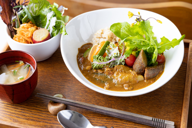 スパイスから作る「本日の気まぐれカレー」も人気です。「まるごと根菜カレー」や「有機豆乳カレー」などが日替わりで登場。自家製ジャムのほのかな甘みが隠し味に。野菜もたっぷり添えられた、体思いのヘルシーカレーもぜひチェックしてくださいね。