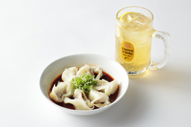 ピリ辛のエビ入りワンタンとオリジナルの辛口ハイボールがよく合います!暑い日は辛い物とアルコールで暑気払いを!