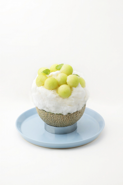 メロンがそのまま器になった、インパクトのある見た目のかき氷です。練乳と梅シロップを合わせた特製のかき氷シロップで、さっぱり癖になる味わいです。