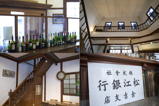 銀行のカウンターや応接室へと続く階段、吹き抜けの格子窓などは、そのほとんどが当時のまま。店内には、銀行時代の看板やモノクロ写真なども飾られているので、ぜひ注目してみてくださいね。