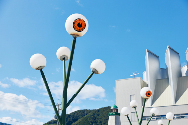 水木しげるロードの見どころは、妖怪ブロンズ像だけではありません。例えば、駅前に立ち並ぶ街灯をよく見ると、目玉おやじがモチーフに!意外なところにひょっこり現れるのが、なんだかとても妖怪らしいですよね。