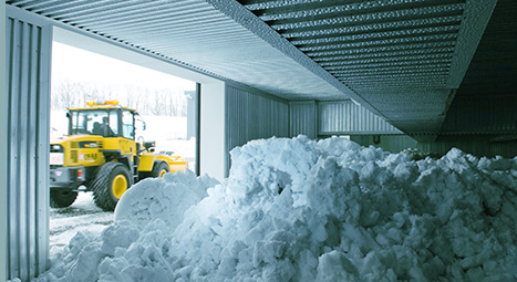 製造ラインの後は、雪室(ゆきむろ)を見学。冷たい部屋のなかに貯蔵されている雪は、毎年冬、工場周辺に多く降り積もった雪を集めたもの。これは省資源・省エネルギーの取り組みとして、工場から出る温排水の冷却などに利用されているそうです。