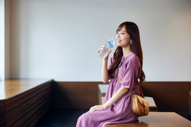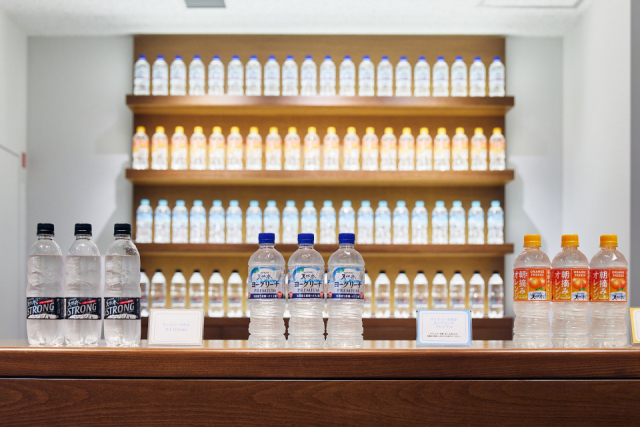 見学終了後には、試飲タイムも。「サントリー天然水<奥大山>」のほか、工場で製造された自社ブランド製品の試飲を楽しむことができますよ。