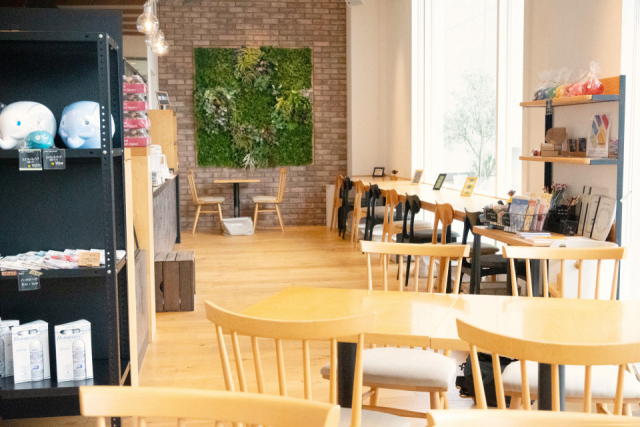 店内には、窓際のカウンター席や、ゆったりとしたテーブル席などがあり、おひとりさまでもグループでも寛げる雰囲気。かわいい雑貨なども販売しているので、チェックしてくださいね。