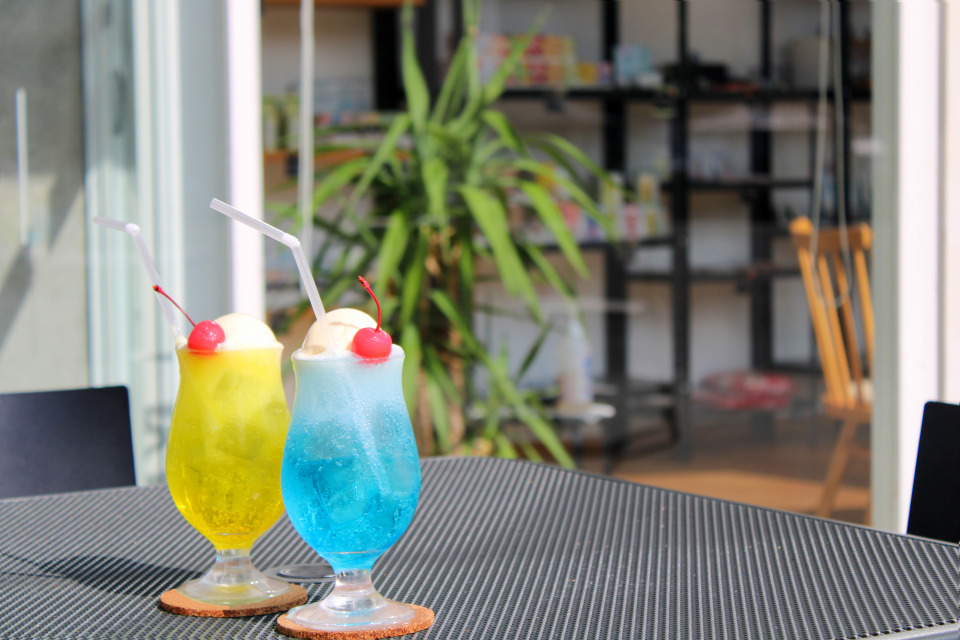カラフル&ポップな色合いがレトロなクリームソーダもおすすめ!イチゴ・メロン・ブルーハワイ・レモン・カルピスの5つのフレーバーからお好みで選びましょう。こちらはテイクアウトでも注文できるので、ドライブのお供にもぴったり。