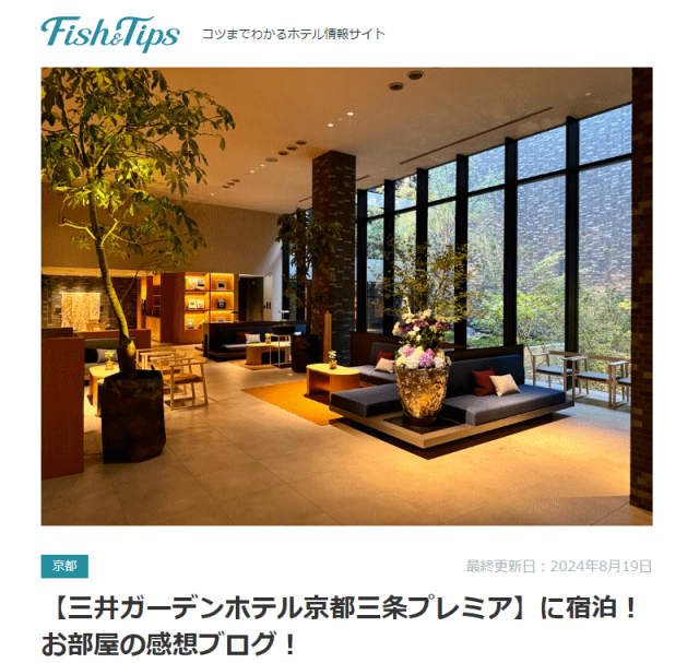 Fish & Tipsは、実際に泊まったホテルの宿泊記+各予約サイトの価格比較を同時チェックできるホテル宿泊記まとめサイト。外観からエントランス、部屋の細かい写真、サービスまでわかり!