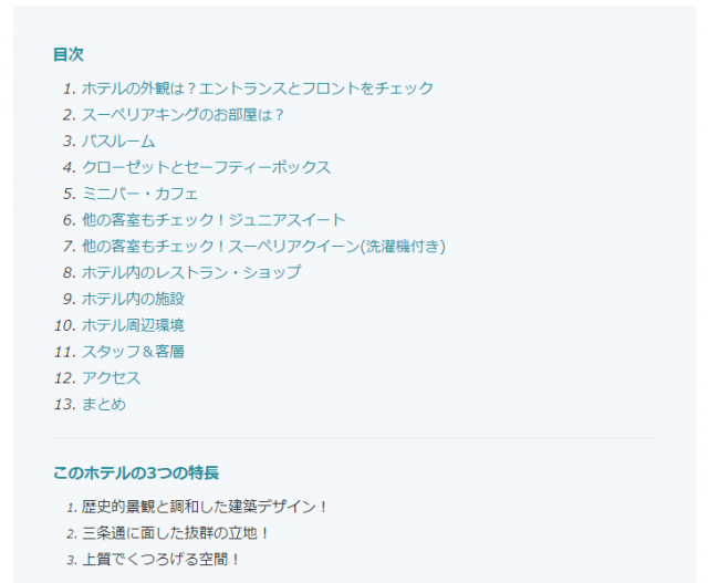 記事例 予約サイト等ではなかなか分からない細かいポイントもレポート