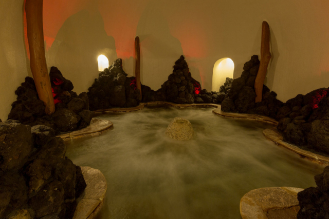 その中でも溶岩が壁を覆っている「洞窟風呂」は、幻想的な雰囲気でお子さんも楽しめること間違いなし!お風呂で探検気分を味わえちゃいます。低温バブル風呂なので、大人はお子さんを見ながらのぼせることなくゆっくりとお風呂を楽しめますよ。