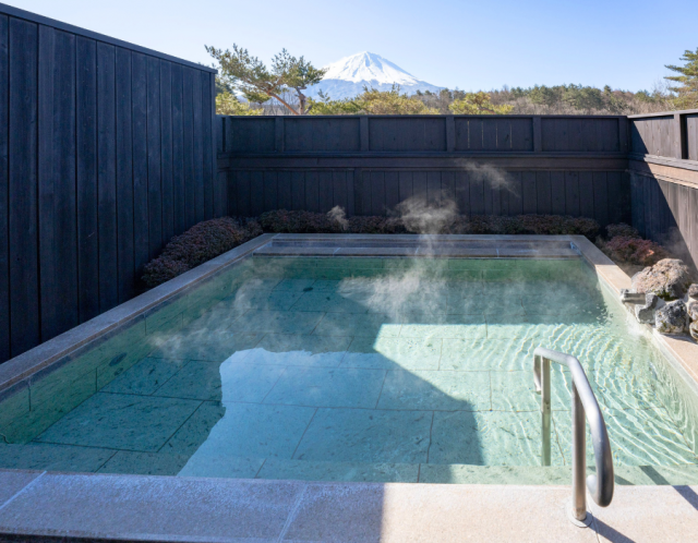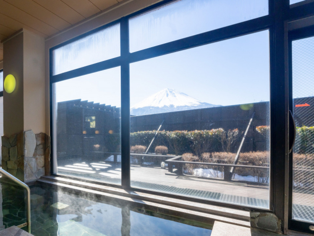 露天風呂でなくともこの絶景!このままぼーっと富士山を眺めていたら、うっかり露天風呂に入るのを忘れてしまいそう…。それくらい、この「高見風呂」だけでも満足度が高い富士山ビューを堪能できます。が、窓の外にも見えていることですし、せっかくなのでこの後露天風呂にも入りました。
