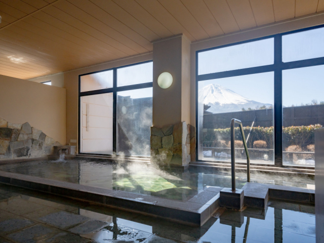 富士山の眺望が抜群の露天風呂の他、炭酸泉や洞窟風呂など趣向を凝らしたお風呂が全16種類揃う日帰り温泉施設。