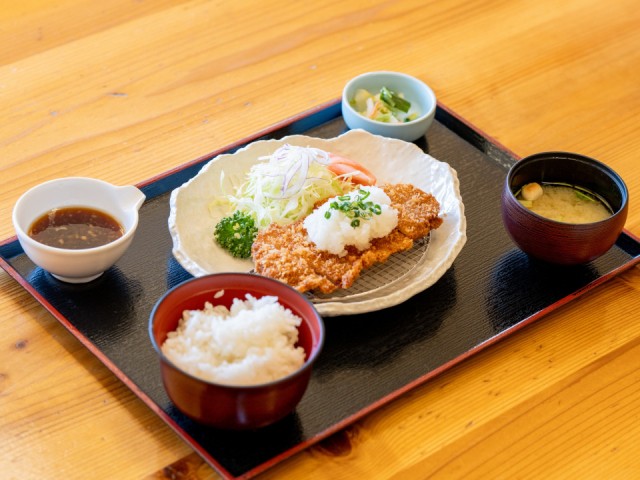 今回頼んだのは、山梨県のブランド豚「富士桜ポーク」のおろしとんかつ定食。がっつりいけるメニューがあるのも嬉しいですね。「富士桜ポーク」のとんかつは、きめ細かく柔らかい食感でとてもジューシー!適度な霜降り感もあり、贅沢な味わいでした。大満足!