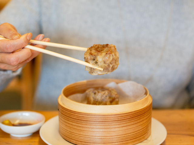そしてメニューを見ていて気になっていたのが、こちらのジャンボシュウマイ。お箸で持っていると落ちそうなくらい重みがあって、ボリューミー!一口かじると肉汁が溢れてきます。