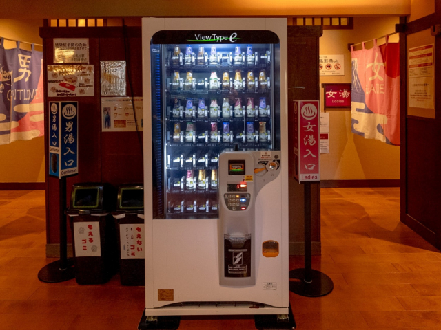 温泉で体の芯までポカポカに温まったあとは、冷たい牛乳を。「富士眺望の湯ゆらり」の自販機は種類も豊富。瓶なのも雰囲気があっていいですね♪