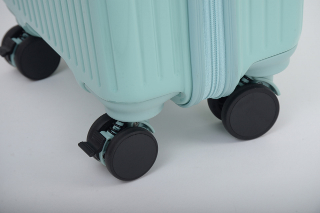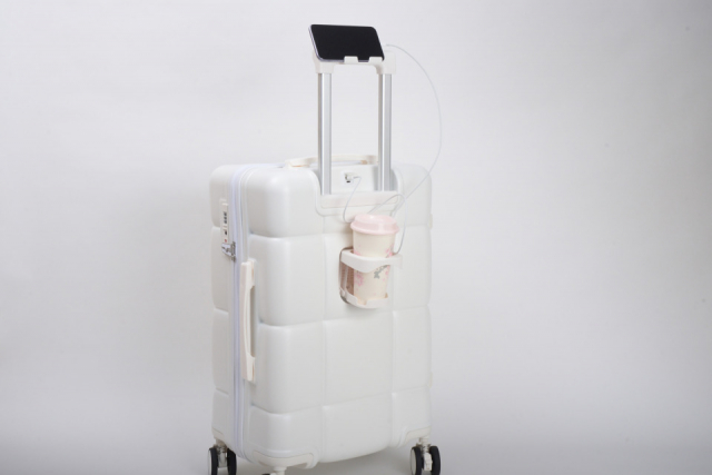 最後にお試ししたのは、マカロンカラーがかわいいキャリーケース。基本的な機能は押さえつつシンプルにした、軽くてリーズナブルな一台です。