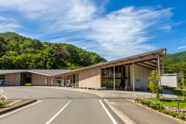 木のぬくもりを感じる建物は、古民家の古材を使って建てられていて、どこか懐かしく落ち着ける雰囲気。旅の合間に、ほっとひと息つける場所です。