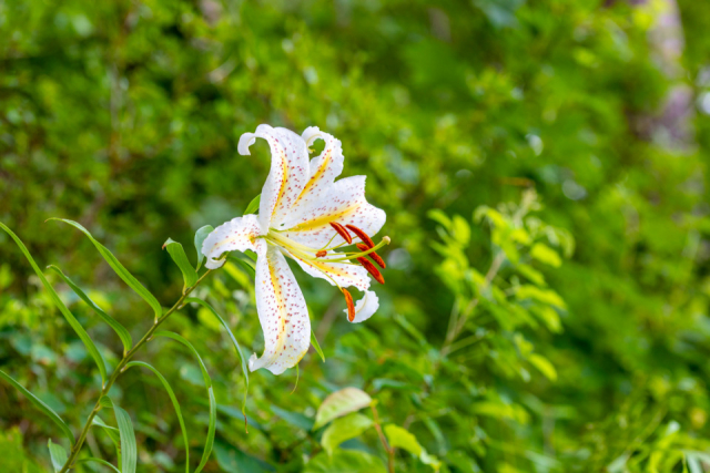 道中には季節の花が咲く場所もあり、足元に咲くスミレやニリンソウ、タンポポ、ヒメジョオン、ナズナ、ユリなどの草花が、景色にやさしい彩りを添えてくれます。