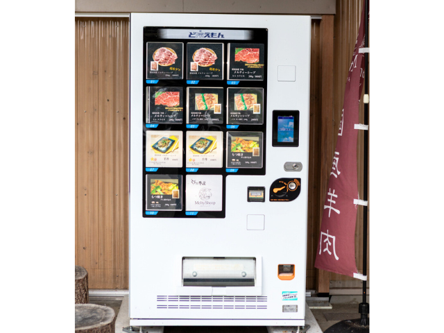 「あぜりあ」を訪れたら、ぜひチェックしてほしいのが、入り口横にある冷凍自販機。ここでは、葛尾村産のブランド羊肉「メルティーシープ」が購入できます。