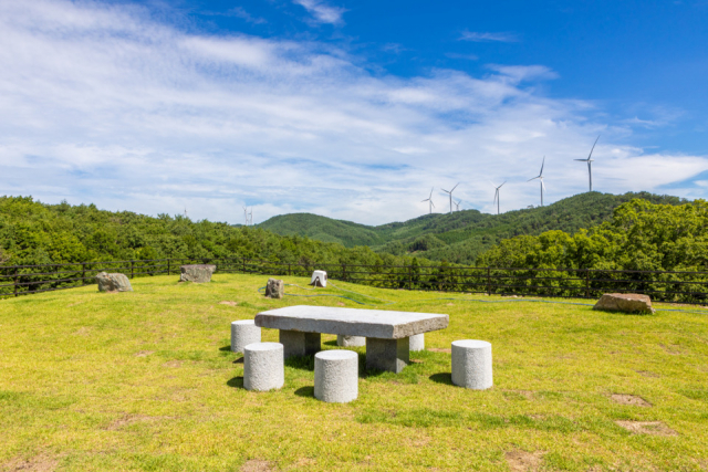 おすすめは晴れた日。青空の下でゆっくり回る風車を眺められ、夕暮れ時には夕陽に照らされた幻想的な風景が広がります。時間を忘れてのんびり過ごしてみませんか?