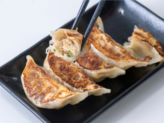 肉みそ入りで、タレなしでおいしい「うまいたけ餃子」500円