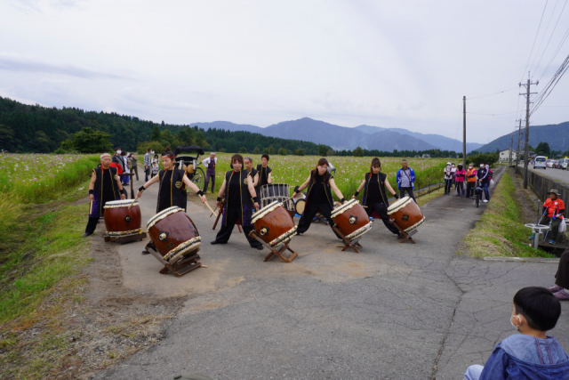 当日はコスモスを自由に摘み取れるほか、コスモスを使ったフラワーアレンジメント教室が開かれ、太鼓演奏の発表も実施。コスモス畑の中を人力車でめぐれる体験も行われます。