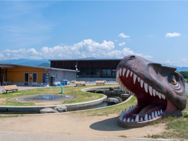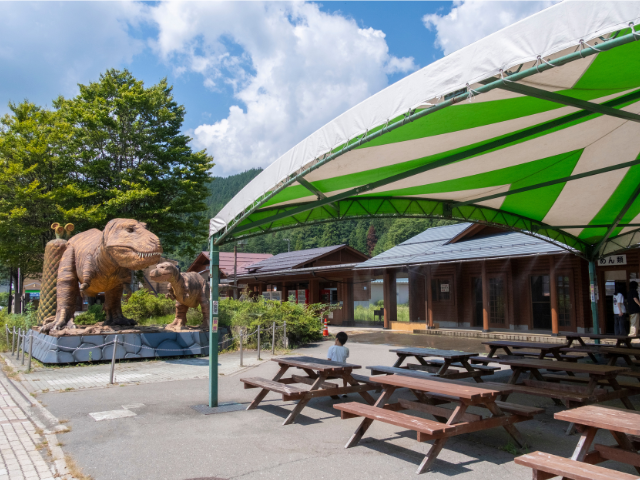 動く恐竜のオブジェが出迎える道の駅