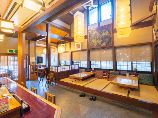 太い梁など歴史を感じさせる古風な店内