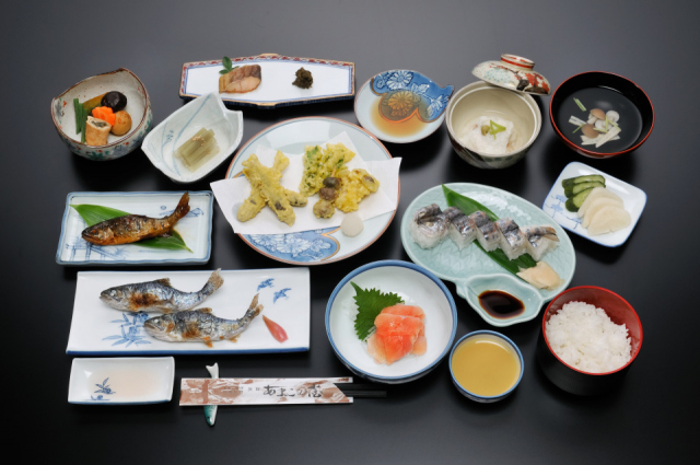 宿泊施設と食事処(予約がおすすめ)を兼ねていて、自家養殖したさまざまな川魚料理を味わうことができます。あまたまをじっくりと味わうなら、ご飯に卵をのせたシンプルな「あまたま丼」がイチオシ。2500円~の多彩なコース料理もあります。