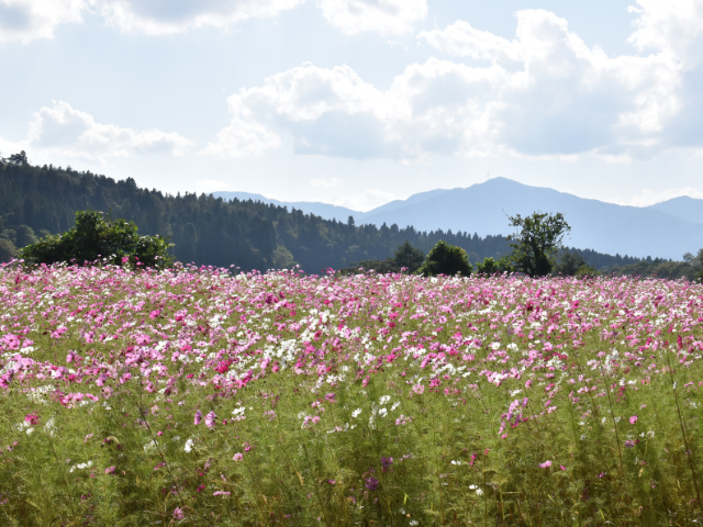 秋の奥越の楽しみ方②一面の「コスモスの花畑」へ!ロマンティックな夕景も必見