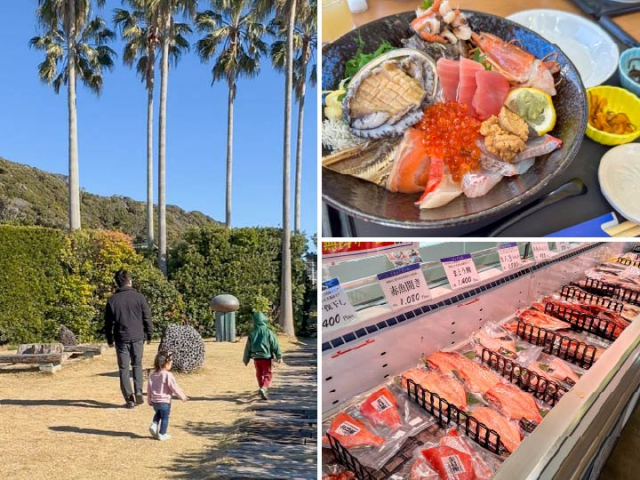 (左)鋸山美術館・石と芸術の街散歩(右上・右下)ザ フィッシュ