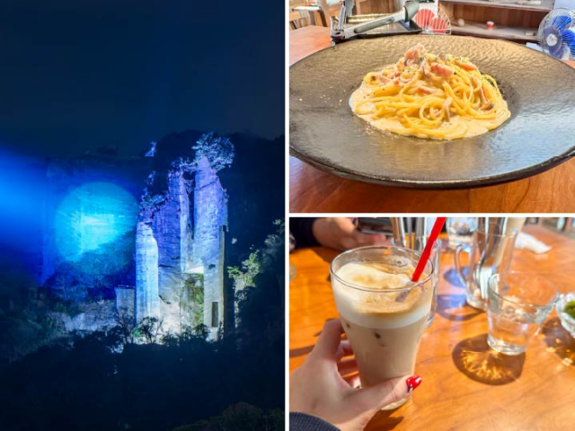 (左)鋸山ライトアップ(右上・右下)NON Café-Gallery