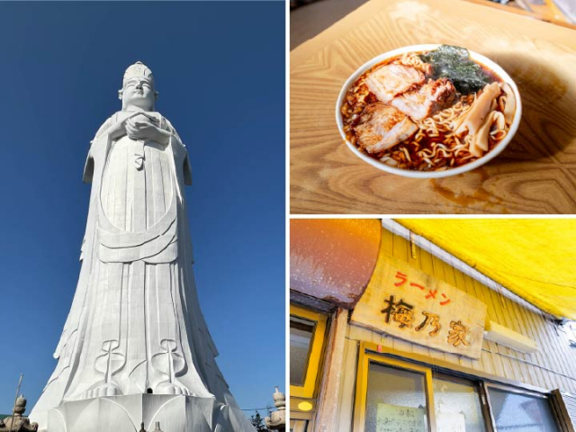 (左)東京湾観音(右上・右下)梅乃家