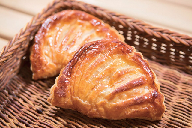 香ばしいパイ生地はジャム状のりんごと相性がよい。色もきれいなりんごは酸味がきいていて、控えめな甘さが親しまれている。人気なので前日までに予約が望ましい。
