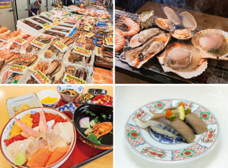 陸奥湊駅前にある八戸市魚菜小売市場を中心とした八戸で最も風情のある朝市。新鮮な魚介や惣菜を販売する威勢のいい声が響き渡る。朝市で朝食を食べるため地元の人も訪れる、まさに街の台所。