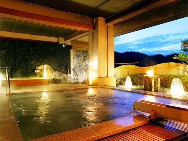 草津温泉のシンボルとして町の中心にある源泉地。毎分約4000リットルの豊富な湯が滝となって流れ落ち、湯けむりが立ち昇る。周囲は瓦を敷き詰めた歩道になっていて、散策にも最適。