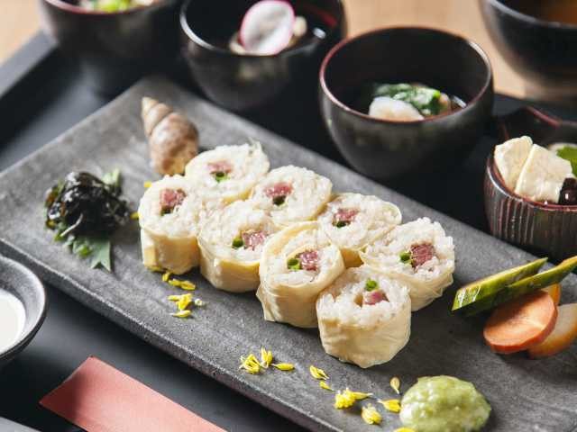 有機栽培や自家菜園などで収穫された季節の野菜など、100%植物性の材料を使った料理が人気のカフェ。以前は骨董品店だったという店内は、和の設えをいかしたモダンな雰囲気だ。