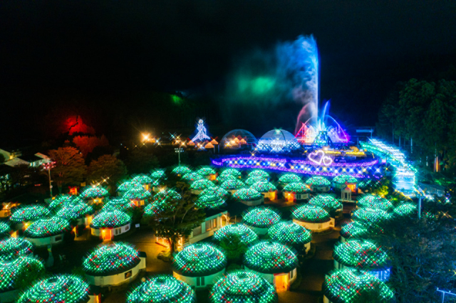 8000本のボタンが咲き乱れ、夜にはライトアップされ幻想的