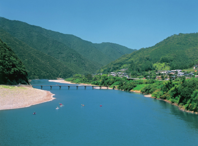 四国山地を横切る吉野川の激流に、結晶片岩が削られてできた渓谷