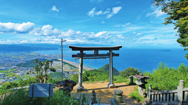 荘内半島に位置する標高352mの紫雲出山。眼下に瀬戸内海の多島美が広がる、山頂展望台からの眺めは圧巻。