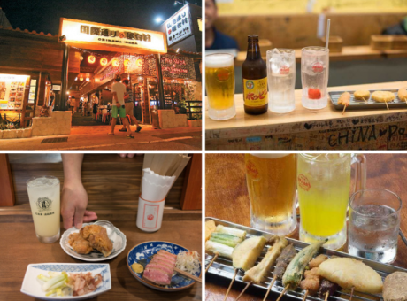 米軍嘉手納基地近くにある、アメリカ西海岸の雰囲気が漂う人気スポット。輸入雑貨ショップをはじめレストラン、ホテル、スーパーなどが建ち並ぶ。観覧車や美しい夕日が眺められるビーチもあり、昼夜を問わずにぎわっている。
