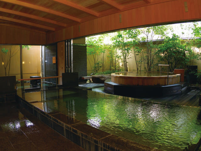 - 1泊2食付=23100円~/外来入浴(14:00~21:00、土・日曜、祝日は11:00~15:00、要確認)=1500円/外来入浴食事付(11:00~15:00、要予約)=6600円~/(入湯税別150円)