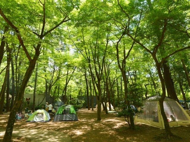 富津公園は東京湾に突き出た富津岬にあり、キャンプ場は公園の入口側に位置する。松林の中にあり、日差しの強い時期には木陰で涼しくバーベキューが楽しめる。また鉄板や網、炭や薪といった燃料などは公園で調達でき、周囲には食材を購入できるお店もあるので、手軽な準備でバーベキューを楽しめるのも魅力だ(食材の予約も可能)。園内にはプール、また歩いて数分のところには潮干狩り場もあるので上手く時間を使って1日中楽しんでみよう。